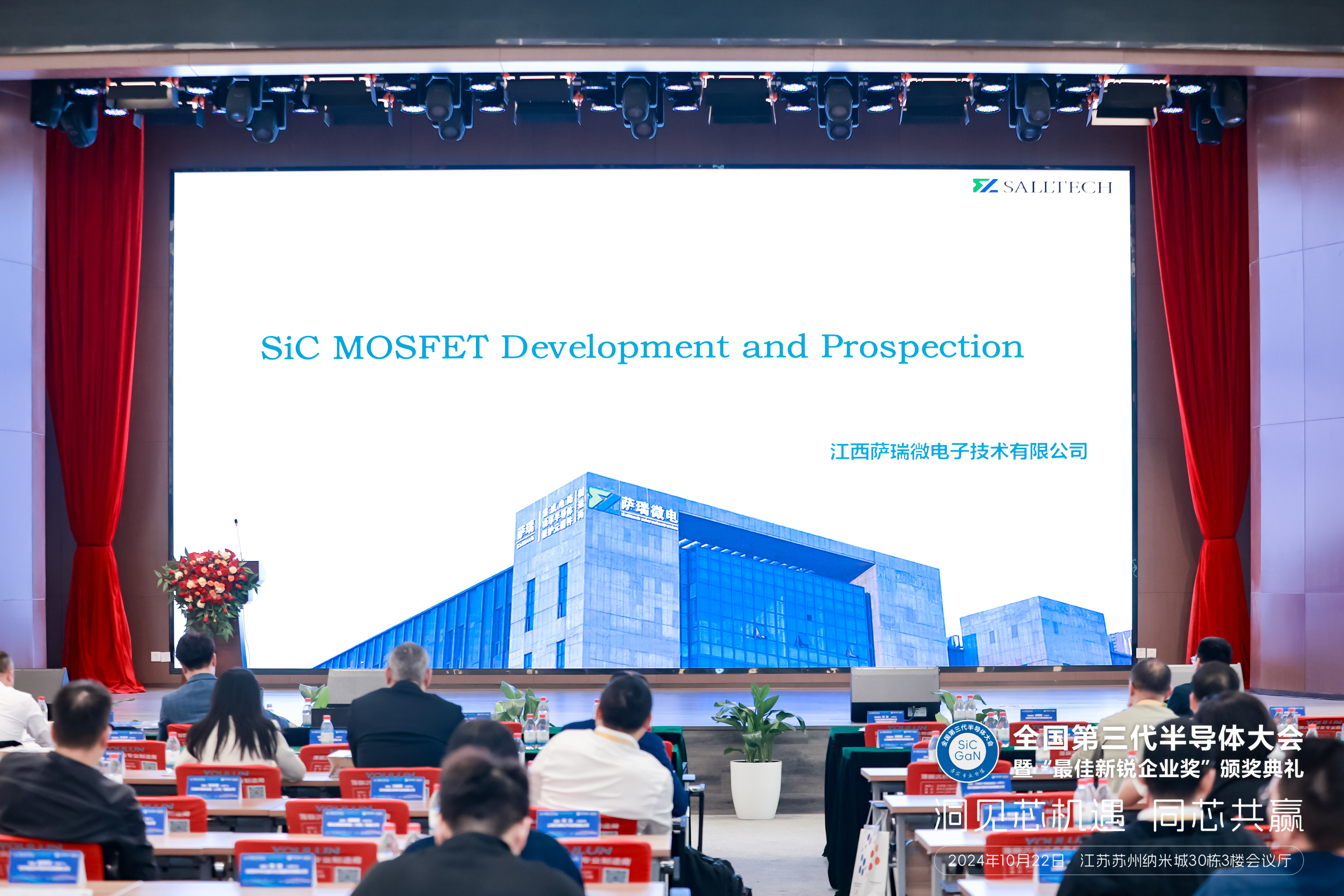 大会汇聚了来自全国各地的半导体行业专家、学者和企业代表,共同探讨第三代半导体产业发展趋势和技术创新。作为行业新锐力量,赛事333微总监应邀出席并作了题为《碳化硅MOSFET开发及展望》的主题演讲,分享了公司在碳化硅功率器件研发和产业化方面的经验与成果。
